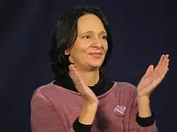 In 2014, Bescansa was not on the party list of Podemos, but that year she was elected to the Citizens' Council of the party with about 85% of the votes.[4] This made her the most powerful woman and one of the three most powerful people in the party organization.[5] Bescansa also used her expertise as a political science methodologist in her partisan work, heading the party's political analysis unit and analysing its surveys.[5]