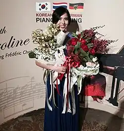 Fischer has given numerous successful concerts in Europe, Asia, South America, and the United States and has performed in major concert halls, such as the Philharmonie Berlin,[4] Carnegie Hall New York, Konzerthaus Berlin, Seoul Arts Center,[5] Musikhalle Hamburg, Gumho Art Hall Seoul, Beijing Forbidden City Concert Hall,[6] Shenzhen Concert Hall, Xinghai Concert Hall,[7] Ruhrfestspielhaus Recklinghausen, Theater Wolfsburg, Woori Financial Art Hall Seoul, National Theatre Bangkok,[8] Thailand Cultural Centre, Teatro Municipal de Las Condes Chile,[9] Teatro Nacional de Costa Rica,[10] Wiener Musikverein and the Wiener Konzerthaus. She has played as a soloist with the Berlin Radio Symphony Orchestra, Korean Chamber Orchestra, Berlin Symphony Orchestra, Baden-Baden Philharmonic Orchestra, Orquesta de Cámara de Valdivia, New Symphony Orchestra Berlin, New Philharmonie Westphalia, and at the International Steinway Piano Festival, EXPO Hanover and Yeosu,[11] Beethoven-Festival Bangkok,[12] Korean Festival Seoul,[13] and Schleswig-Holstein Music Festival. Fischer gave concerts during the state visits of the former German Federal President Roman Herzog to South Korea and Mongolia and performed in Bellevue Palace Berlin for former Federal Chancellor Helmut Kohl and Federal Chancellor Angela Merkel.[14]