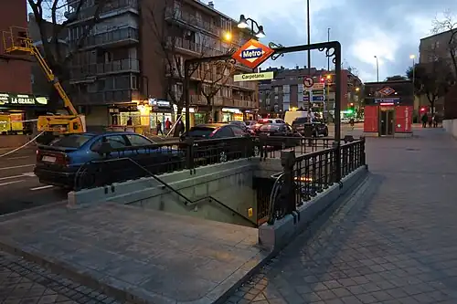 Carpetana [kaɾpeˈtana] is a station on Line 6 of the Madrid Metro, on the Calle Vía Carpetana. It is located in Zone A.[1]