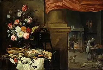 - ^ Kitchen still life with vase of flowers, dead birds, fish and a cat at the Netherlands Institute for Art History (in Dutch)