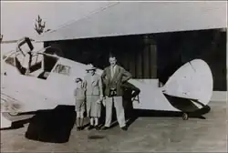 In 1937, Richard and Maie Casey took flying lessons, obtained their licences and bought a Percival Vega Gull which Richard flew between Melbourne and Canberra.[1] Ryan built a landing strip on the property in 1938 and built a hangar to house the Gull. When certified as an aerodrome in June of that year it was named Casey Airfield. Use of the airfield was suspended at the outbreak of World War II and the Caseys' Gull was impressed into the Royal Australian Air Force in November 1939.