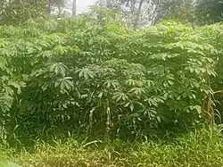 Originally a crop of South America, it was introduced into Nigeria's southern part during the period of slave trade proliferated by Portuguese explorers and colonizers in the sixteenth century.[4] However, its importance to the country got a boost in the late nineteenth century when more formerly enslaved Nigerians returned to their homeland and introduced processing techniques. Over the years, it has become a major economic sustenance crop and it has attained the status of largest producer in the world with recorded production of 34 million tonnes and is a cash crop of great importance to the people of Nigeria.[4]