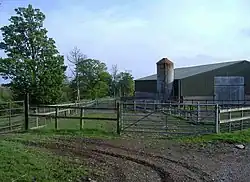 After crossing the Rhondda, the road rises out of the valley in a southerly direction nearly due south to Castellau. Castellau is located less than a mile north-west of Beddau.[4] A forge was situated in a small valley, Darren Ddeusant,[5] extending upwards by the mansion, Castellau House, into the hills to the north of Llantrisant.[6] This hamlet contains some coal works, part of the produce of which is shipped for Ireland.[2]