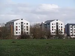 The development has been controversial, since the four to five storey blocks overlook Port Meadow, an historic open area to the north with views of some of Oxford's skyline.[12] Campaigners warned of damage to views of Oxford.[13][14] There was an online petition[15] and a "Save Port Meadow" campaign was established in December 2012.[16] Concern was raised by the Oxford Preservation Trust,[17] Layla Moran MP, the Liberal Democrats,[18] and Green Party.[19] Some members of Oxford University expressed anger.[20] The development has been likened by a critic to building a "skyscraper beside Stonehenge".[21]