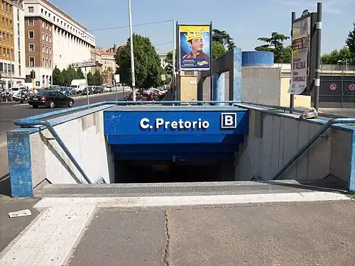 Castro Pretorio is a station on Line B of the Rome Metro.[1] It was opened on 8 December 1990 and is located on Viale Castro Pretorio, at its junction with Via San Martino della Battaglia, in the Castro Pretorio rione. Its exit overlooks the Castra Praetoria (the camp of the Praetorian Guard), now the site of the Biblioteca Nazionale Centrale.