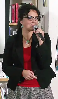 ![]() Curceanu speaking at the Libreria Assaggi in 2015 | |