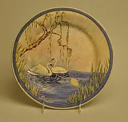 In 1930, Wrigley brought artisans to the Island to design decorative and functional pottery products including souvenirs, vases, bookends and figurines.[2] Red clays found on the Island were used for pottery until 1931. After 1931 white clay from the United States mainland was combined with the red clay until finally only white clay was used. Glazes were made with local minerals mined on the Island. The company sold its ware as Catalina Pottery and Catalina Tile. The pottery opened free standing stores to sell their wares in Avalon, Santa Catalina Island, Hollywood, Olvera Street in Los Angeles, and in the Arizona Biltmore Hotel, Phoenix. Dinnerware and art ware was sold through department and jewelry stores. The pottery's tile was used for the interiors and exteriors of buildings on the Island. Tile products were used throughout the United States. The Arizona Biltmore Hotel's swimming pool was built using Catalina tile.