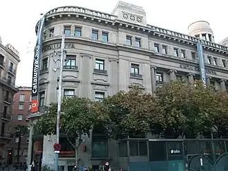 CatalunyaCaixa (Catalan pronunciation: [kətəˌluɲəˈkaʃə]) was the trading name of Catalunya Banc S.A.,[2] a Catalan bank with headquarters in Barcelona and owned by Banco Bilbao Vizcaya Argentaria (BBVA), and absorbed by it in 2016.[3][4] Its area of influence is located mainly in Catalonia. It was the fourth-largest savings bank in Spain in terms of consolidated assets, with €81.020 billion.[1]