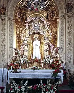 It preserves the first altarpiece in which Solomonic columns were used in Spain. It was assembled in 1664 as an act of atonement to house a canvas of the Immaculate Conception that had been outraged that same year when the face of the Virgin was slashed with a dagger by an opponent to the Dogma of the Immaculate Conception of Mary.