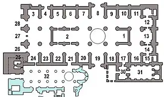 Its main entrance consists of three richly decorated arcs,[1] each leading to the three naves (sections) of the church.