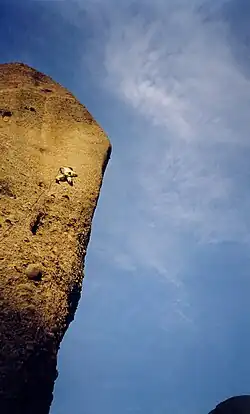 ![]() Catherine Destivelle climbing on the Adrachti tower in Greece | |||||||||||||||||||||