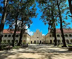 The white and gold "Vatican flag" was regularly flown at all major public events in South Vietnam.[55] The newly constructed Huế and Đà Lạt universities were placed under Catholic authority to foster a Catholic-influenced academic environment.[56]