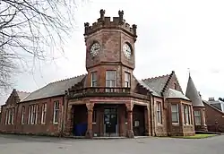 Catrine was constructed around one of the first cotton mills in Scotland in 1787 by Claud Alexander of Ballochmyle (who had made a not insignificant fortune as Commissary General in India) in partnership with David Dale.[5] A plan of Catrine at that time shows the hamlet consisted of 11 buildings, including a smithy and corn mill.[6]