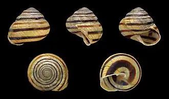 - ^ Neiber, M.T.; Hausdorf, B. (2015). "Molecular phylogeny reveals the polyphyly of the snail genus Cepaea (Gastropoda: Helicidae)". Molecular Phylogenetics and Evolution. 93: 143–149. doi:10.1016/j.ympev.2015.07.022. PMID 26256642.