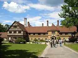 Cecilienhof Palace (German: Schloss Cecilienhof) is a palace in Potsdam, Brandenburg, Germany, built from 1914 to 1917 in the layout of an English Tudor manor house. Cecilienhof was the last palace built by the House of Hohenzollern that ruled the Kingdom of Prussia and the German Empire, until the end of World War I. It is famous for having been the location of the Potsdam Conference in 1945, in which the leaders of the Soviet Union, the United Kingdom and the United States made important decisions affecting the shape of post-World War II Europe and Asia. Cecilienhof has been part of the Palaces and Parks of Potsdam and Berlin UNESCO World Heritage Site, since 1990.[1] It closed to the public on 1 November 2024, for renovations.[2]