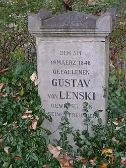 7. ^ "Ausstellung auf dem Freigelände vor dem Friedhof der Märzgefallenen". Friedhof der Märzgefallenen (in German). 26 March 2024.