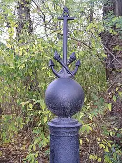 Some of the names on the surviving gravestones differ from those on the memorial stone. The three gravestones for the victims of the November Revolution are located in the western part of the complex. While the one on the left is covered with a slogan by Karl Liebknecht and the one on the right with a slogan by Walter Ulbricht, the one in the middle bears 33 names of victims of the November Revolution, the most famous of whom is Erich Habersaath. He was the first Berlin victim of the November Revolution and was shot on November 9, 1918. The bronze sculpture of the Red Sailor stands on the south-western corner of the small wall surrounding the cemetery.