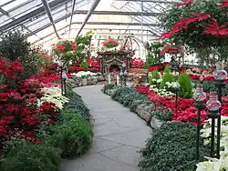The highlight is the Christmas show which opens the second Sunday of December with Christmas carollers, cookies, and hot apple cider. In December many different poinsettias are displayed, from white to red to dark purple. The Japanese chrysanthemum show occurs the first Sunday in November. The spring show at Easter features hyacinths, tulips, hydrangeas, and Easter lilies.