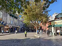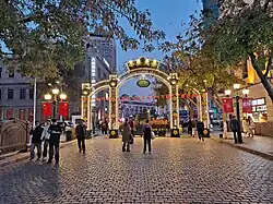 Central Street or Zhongyang Street (Chinese: 中央大街) is a pedestrian street located in central Harbin, China. Measuring 1450 meters long, it is currently the longest pedestrian street in Asia[2] and the only cobbled street in Harbin.[3] It was built in 1898 by Russian constructors when the city was at its semi-colonial period. Architectures along the street are in various styles including eclectic, Baroque, Renaissance and modern.[4]