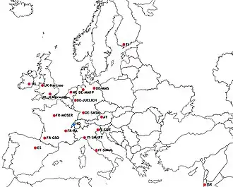 ![]() Location of CECAM Nodes (red) and HQ (blue) | |