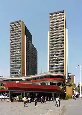 The Centro Simón Bolívar Towers TCSB also known as the Towers of Silence is a building with a pair of 32-story towers, each measuring 103 meters in height, in El Silencio district, Caracas, Venezuela. Built during the time of the presidency of Marcos Pérez Jiménez, the TCSB was opened to the public on December 6, 1954.[1][2]