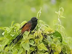 The Malagasy coucal or Madagascar coucal (Centropus toulou) is a species of cuckoo in the family Cuculidae. It is found in Madagascar and in the Seychelles, where it occurs on Aldabra and was formerly present on Assumption Island and Cosmoledo. Its natural habitats are dense vegetation in subtropical or tropical moist lowland forests, mangrove forests, rough grassland, marshes and reedbeds.