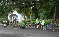 A sanctioned century ride is organized and conducted under the rules and liability protection of a sanctioning organization, such as the League of American Bicyclists.[1] Sanctioned rides typically have rest stops every 25 miles or so, where water, food and toilets are available for cyclists. On a supported century ride, the route is patrolled by a sag wagon to assist riders with bicycle maintenance, or provide transportation back to the starting line for those unable to ride the entire course. Sanctioned rides are almost always supported.