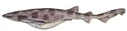 The whitefin swellshark (Cephaloscyllium albipinnum) is a species of catshark, belonging to the family Scyliorhinidae, endemic to southeastern Australia. It is found 126–554 m (413–1,818 ft) down, on the outer continental shelf and upper continental slope. Reaching 1.1 m (3.6 ft) in length, this shark has a very thick body and a short, broad, flattened head with a large mouth. It is characterized by a dorsal color pattern of dark saddles and blotches over a brown to gray background, and light fin margins. When threatened the whitefin swellshark can inflate itself with water or air to increase its size.[2] Reproduction is oviparous. As of 2019 The International Union for Conservation of Nature (IUCN) has assessed this species as Critically Endangered due to the significant decline of the population.