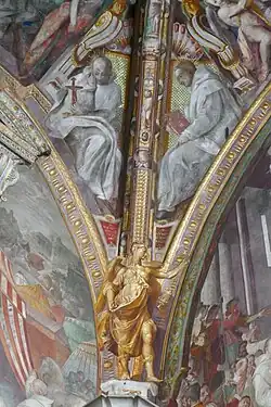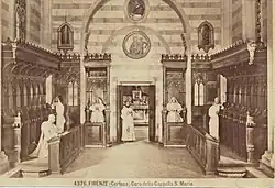 The chapter house now holds five fresco lunettes by Pontormo from the cloister, damaged by exposure to the elements.