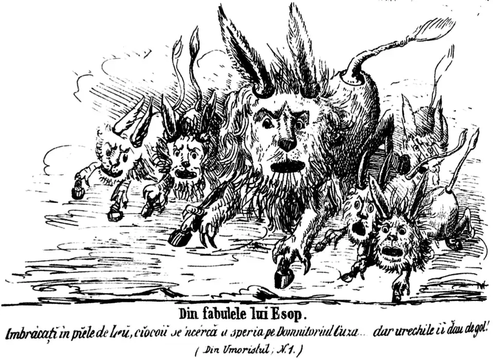 Reconfirmed after elections in April 1875, exactly a year later Bolliac entered a slim parliamentary majority supporting the right-leaning Florescu cabinet.[333] He endorsed the Second Epureanu cabinet, prompting allegations that he was "paid directly by government."[334] Bolliac was also outspoken in his opposition to the National Liberal Party, which had fused together the "Red" movements, and which formed a national cabinet in July 1876. He warned that the new establishment, now encouraged by Russia, was busy fabricating pretexts for a war with the Ottoman Empire.[335] Adversaries such as the young author Ion Luca Caragiale identified and ridiculed him as a Bonapartist.[336] In his final articles for Trompeta, Bolliac endorsed "progressive conservatism" and D. Ghica against both Rosetti's "far-left" and Catargiu's "far-right". He regarded Romanian Orthodoxy as a state religion, and did not want Romania turned into a republic, while resenting Catargiu's blanket opposition to social reform.[337] He also changed his stance on the Hungarian issue, distancing himself from nationalist activists such as Sigismund Borlea, and confiding that "he desires peace between the Hungarian and Romanian people, from the bottom of his heart". However, he still supported the emancipation of local Transylvanian Romanians, arguing that the abolished principality should have been revived.[338]