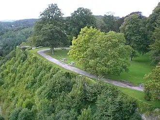 Around 1070, Richilde, Countess of Hainaut (1020-1086) constructed a castle at Beaumont with a chapel dedicated to Saint Venantius.[1][2][3] Its aim was to defend the southern part of the County of Hainaut. It stood on the edge of a small plateau on the right bank of the Hantes river, overlooking the valley. The castle consisted only of one keep, the so-called Salamander tower.