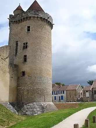 The bases of the three last towers were raised after 1370 out of sandstone from Fontainebleau, whereas the higher stages were completed about 1390 by Guillaume IV out of gritstone, a more economic material. The keep had three points of entry, a feature thought to be rare.