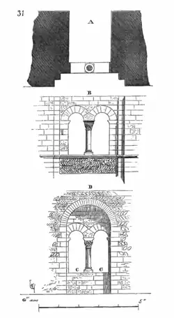 The tower built in the first quarter of the 12th century contained a hall, chapel, and a room for the lord, but no small rooms for a complicated household arrangement; in this way, it was similar to towers at Corfe, Norwich, and Portchester, all in England.[3]