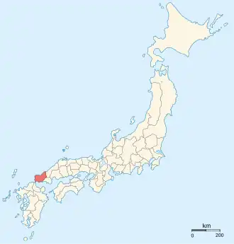 Nagato Province (長門国, Nagato no Kuni; Japanese pronunciation: [naꜜ.ɡa.to (no kɯ.ɲi), naꜜ.ŋa-][1][2]), often called Chōshū (長州; [tɕoꜜː.ɕɯː][1][2]), was a province of Japan. It was at the extreme western end of Honshū, in the area that is today Yamaguchi Prefecture.[3] Nagato bordered on Iwami and Suō Provinces.