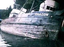 During her period owned by the Tillions; Chacon reportedly struck a boom cable in Icy Bay, causing damage to the bow, and was subsequently beached alongside another wreck in Kachemak Bay. Chacon was originally powered with a 125 hp gasoline engine[4] that was later replaced with a General Motors "Jimmy" Detroit Diesel Series 71.