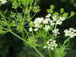 Pollinators for Chaerophyllum bulbosum includes flies and beetles.[17]