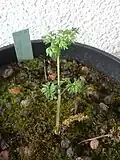 The cultivation is similar to carrots and parsnips. An adequate site for cultivation is characterized by light and fertile soils.[13] The soil should be moderately moist. Cultivation period is from 9 up to 10 months.[14] The seeds require exposure to cold temperatures (vernalization) to break dormancy in spring. The crop cultivation starts therefore in the autumn. The dormancy ends with at least 8 weeks of continuous humidity and temperatures below 5 °C. After stratification, germination is at optimum with a temperature range between 5 and 10 °C. At temperatures above 25 to 30 °C significant germination inhibition occurs.[15] Sowing is done directly, without any seedling cultivation, from September to November. Distance between rows is usually from 20 up to 25 cm with a distance of 4 to 6 cm between seeds.[16] In the first year of growth, after sprouting in spring, the tuber develops with a leaf rosette just above ground. Voles are a common pest for this crop in the field.[17]