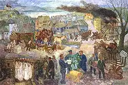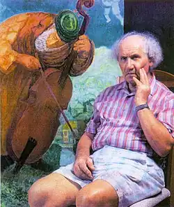 Chaim Goldberg (Hebrew: חיים גולדוורג; March 20, 1917 – June 26, 2004) was a Polish-Israeli-American artist, painter, sculptor, and engraver. He is known for being a chronicler of Jewish life in the eastern European Polish villages (or shtetlekh) like the one in his native Kazimierz Dolny in south-eastern Poland. He witnessed the colorful life and began to draw what he saw. The recurring art colony atmosphere became the highpoint of his self-actualization dreams, as he envisioned himself becoming an artist like those who visited the village. He yearned to experience life as they did for himself and later undertook the mission of being a leading painter of Holocaust-era art, which to the artist was seen as an obligation and art with a sense of profound mission.[1]