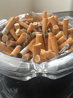 Chain smoking is the practice of smoking several cigarettes in succession, sometimes using the ember of a finishing cigarette to light the next. The term chain smoker often also refers to a person who smokes relatively constantly, though not necessarily chaining each cigarette. The term applies primarily to cigarettes, although it can be used to describe incessant cigar and pipe smoking as well as vaping and the smoking of other substances such as cannabis. It is a common indicator of addiction.[1]