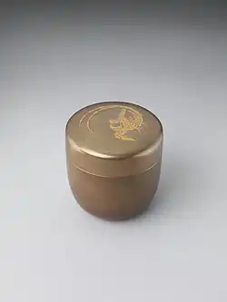 Kōdai-ji bun natsume (高台寺文棗) is named after Kōdai-ji in Kyoto and features the imperial chrysanthemum seal and the paulownia seal of the regent Toyotomi Hideyoshi.[4][5][6]