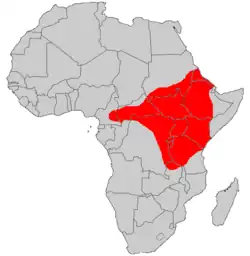 Found mostly in the lowlands,[4] Chamaeleo laevigatus is widely distributed in the Central and East Africa. It has been recorded in Burundi, Rwanda, Kenya, Sudan, South Sudan, Uganda, Tanzania, the Democratic Republic of the Congo, Central African Republic, Zambia, Ethiopia, and Cameroon.[1][3] There is uncertainty whether the Cameroonian records represent this species or the morphologically similar Chamaeleo senegalensis,[1] and the same may apply to the Central African Republic.[3]