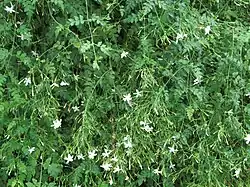 It is a scrambling deciduous shrub growing to 2–4 m tall. The leaves are opposite, 5–12 cm long, pinnate with 5–11 leaflets. The flowers are produced in open cymes, the individual flowers are white having corolla with a basal tube 13–25 mm long and five lobes 13–22 mm long.[4][5] In Pakistan, it grows wild in the Salt Range and Rawalpindi District at 500–1500 m altitude.[4]