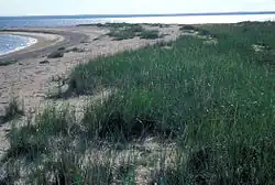 The island is roughly triangular. It is 1.4 miles (2.3 km) long and an 0.125 miles (0.201 km) wide. The highest point on Chamisso Island is 226 feet (68.9 m) above sea level. It comprises one large sand spit and a low beach zone surrounding a covering of tundra with a few marshy bogs. Although Chamisso Island is much larger, nearby Puffin Island houses many more nesting birds, especially horned puffins, black-legged kittiwakes, and thick-billed murres which build their nests on the steep-walled cliffs that fall into Spafarief Bay. Iñupiat cross from the mainland to gather eggs, primarily from kittiwakes and murres. With the exception of birds and the occasional fox that crosses frozen sea in winter, nothing lives on the islands. Walruses, seals, and whales can often be seen in Spafarief Bay.[2]