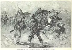 ![]() Battle of Chancellorsville, by Kurz and Allison, 1889 (Apocryphal painting depicts the wounding of Confederate Lt. Gen. Stonewall Jackson on May 2, 1863) | |||||||