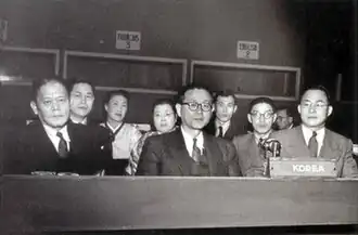 Under Japanese rule, Chang worked in education as a school teacher, administrator, and principal. In 1948, he led the delegation of the Republic of Korea to the UN General Assembly. In 1949, he became the first ambassador of the Republic of Korea to the United States. In 1950, he successfully appealed to the United States and the UN to send troops to assist in the Korean War. On November 23, 1950, he was appointed the prime minister of the First Republic of Korea. From 1956 to 1960, he served as the vice president of the First Republic of Korea.