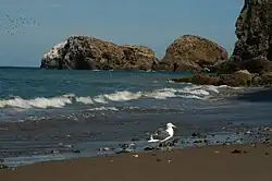 Natural seepage of oil occurs at several places in the Santa Barbara Channel.[7] Tar balls or pieces of tar in small numbers are found in the kelp and on the beaches. Native Americans used naturally occurring tar, bitumen, for various purposes, including roofing, waterproofing, paving, and some ceremonial purposes.[8]