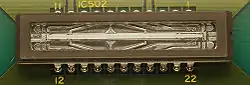 The first working CCD made with integrated circuit technology was a simple 8-bit shift register, reported by Tompsett, Amelio and Smith in August 1970.[10] This device had input and output circuits and was used to demonstrate its use as a shift register and as a crude eight pixel linear imaging device. Development of the device progressed at a rapid rate. By 1971, Bell researchers led by Michael Tompsett were able to capture images with simple linear devices.[11] Several companies, including Fairchild Semiconductor, RCA and Texas Instruments, picked up on the invention and began development programs. Fairchild's effort, led by ex-Bell researcher Gil Amelio, was the first with commercial devices, and by 1974 had a linear 500-element device and a 2D 100 × 100 pixel device. Peter Dillon, a scientist at Kodak Research Labs, invented the first color CCD image sensor by overlaying a color filter array on this Fairchild 100 x 100 pixel Interline CCD starting in 1974.[12] Steven Sasson, an electrical engineer working for the Kodak Apparatus Division, invented a digital still camera using this same Fairchild 100 × 100 CCD in 1975.[13]