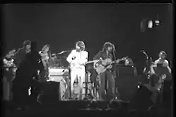 The modern understanding of a benefit concert is of a large-scale, popular event put on to support a charitable or political cause. In the modern era, the first benefit concert is generally seen as the 1971 Concert For Bangladesh. Comprising two shows on the same day at Madison Square Garden, it was organized by and starred George Harrison and Ravi Shankar.[6] The format of most modern benefit concerts, involving many acts, was pioneered in 1985 with Bob Geldof's Live Aid.[1]