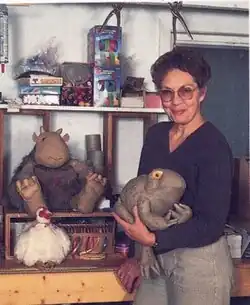 She also designed toys and exhibits for toy firms in Los Angeles and Chicago.[4] She produced Mattel's first animated TV commercial in black and white, and designed stuffed toys for Sears.[5] Not pleased with how these toys came out and the materials used for production, Kinser started thinking of making toys herself.[5]