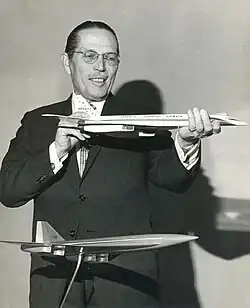 ![]() April 1964 Braniff file photo of President Charles Edmund Beard admiring models of designs for the US Supersonic Transport. In May 1964, he had placed deposits for two of the planned aircraft for Braniff. | |